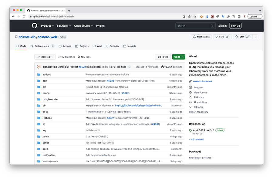 Open-source version of SciNote, electronic scientific notebook, helps you manage your laboratory work and stores all your experimental data in one place.