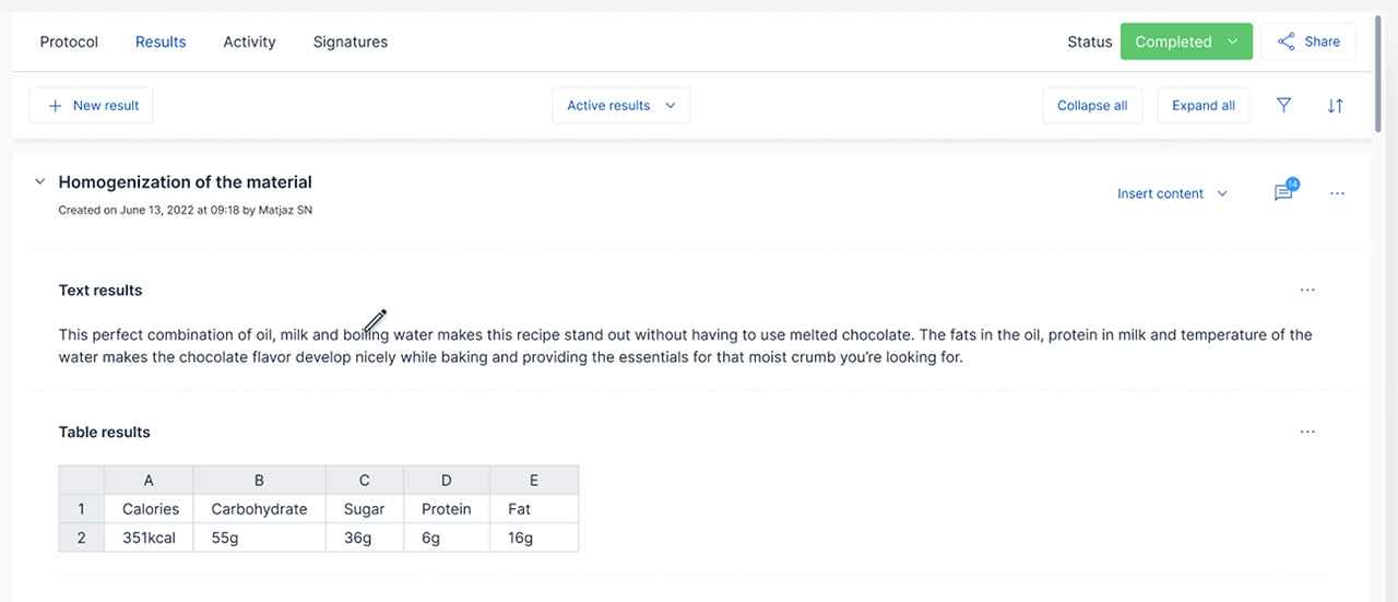 Simply monitor the progress directly in the app by completing the protocol steps on the fly. You can also add comments to protocol steps or read those added by others. You can download step attachments and open them on your device. Check the task details, notes, and protocol description when needed. You can simply create text results and attach images or other files to the task results directly in the app. Update the task status when you’re done with your work.