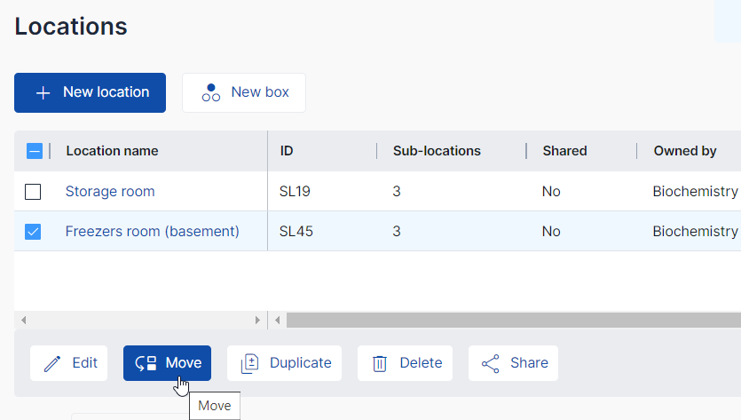 You can also move a location or the whole box of items to another location if you want to reorganize your storage space.