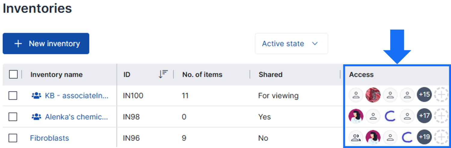 - Manage access from the new “Access” column or toolbar within the Inventory list (as you know from other places in SciNote)